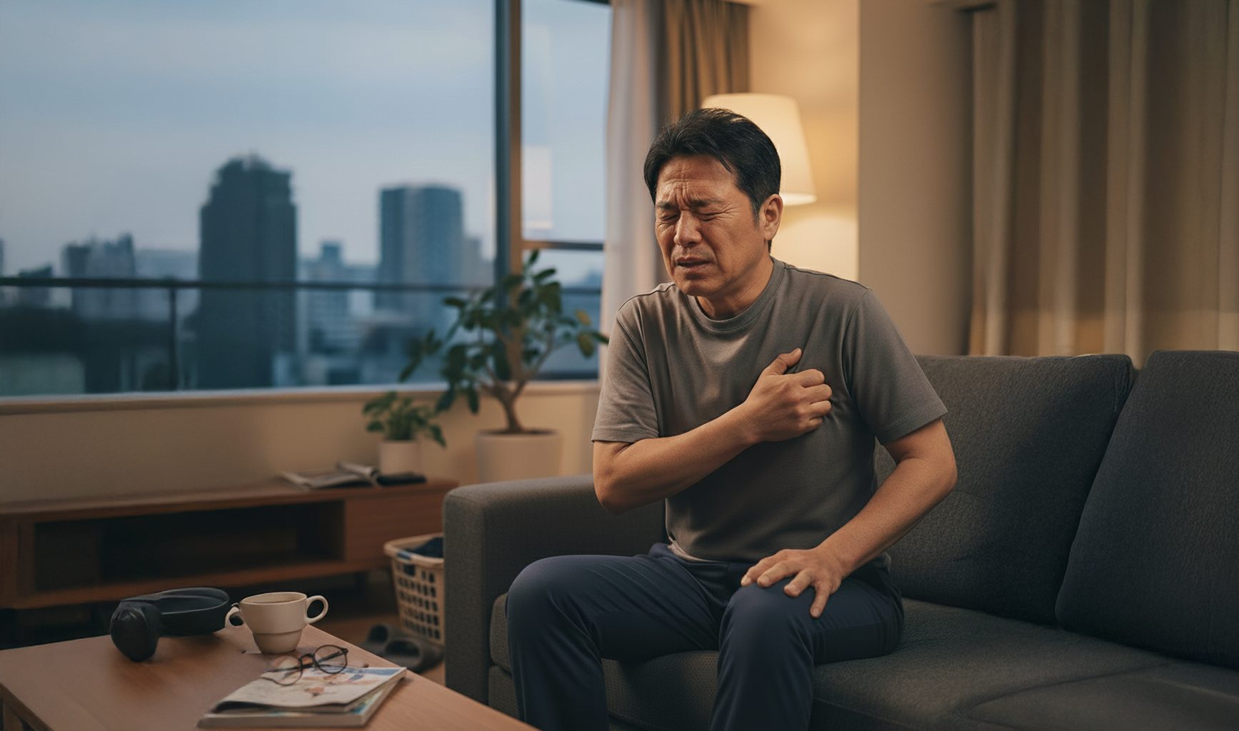 胸に以下の症状が出る場合は、心臓や肺の重大な病気が隠れているサインかもしれません。
